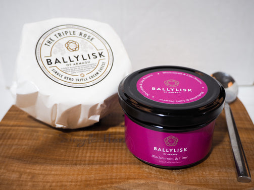 Our Blackcurrant & Lime Preserve is the perfect accompaniment to Ballylisk Triple Rose and Single Rose Brie. The vibrant fruitiness of blackcurrant and lime cuts through the richness of the cheese, producing a mouthwatering contrast to the creamy palette. Also delicious on fresh croissants or sourdough bread. A fantastic alternative to cranberry sauce.